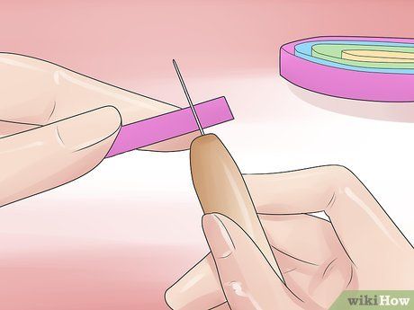 - Với kim cuốn hoặc tăm, làm ẩm ngón tay và cuộn giấy quanh kim. Dùng ngón cái và ngón trỏ xoay sợi giấy quanh đầu kim.