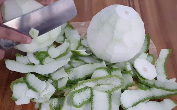 Sau đó, rửa cùi bưởi dưới nước sạch khoảng 5-6 lần liên tiếp để loại bỏ hoàn toàn vị đắng.