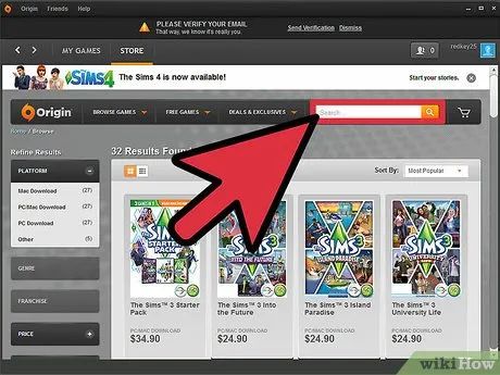 Mua The Sims 3. Truy cập thẻ "Store" (Cửa hàng) trên giao diện Origin và tìm kiếm "Sims 3". Các kết quả liên quan sẽ hiển thị ngay bên dưới.