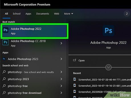 Mở hoặc tạo một tệp Photoshop. Để bắt đầu, bạn nhấp đúp vào biểu tượng ứng dụng màu xanh dương với chữ "Ps," sau đó chọn File từ thanh menu phía trên màn hình và: