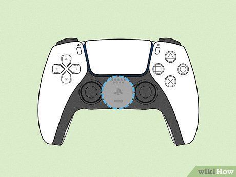 Xác định nút PS5. Nút này mang biểu tượng PlayStation và nằm chính giữa hai joystick trên tay cầm.