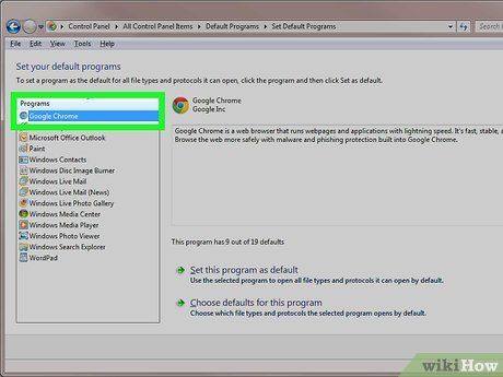 Nhấp vào "Set this program as default" (Đặt chương trình này làm mặc định). Thao tác này sẽ thiết lập Chrome làm trình duyệt mặc định cho tất cả các liên kết web và tập tin HTML.