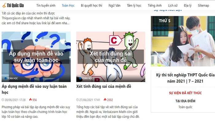 Thiquocgia.vn là một trang web luyện thi toán học, cung cấp nhiều đề thi giúp người học nâng cao khả năng tư duy toán học. Giao diện trang web rất đơn giản, dễ sử dụng, kết hợp với đa dạng đề thi, đặc biệt là những đề thi thử đại học, tạo thuận lợi cho học sinh trong quá trình ôn luyện.