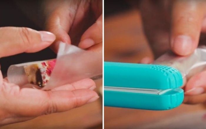 Cuối cùng, cho kẹo vào túi nilon và dùng máy để hàn miệng túi lại, đảm bảo túi được kín và kẹo được bảo quản tốt.