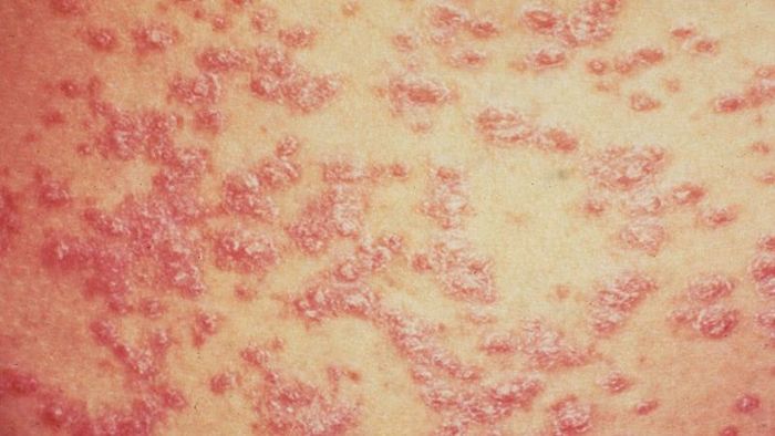 - Giai đoạn 2: Ban đỏ xuất hiện trên da với viền vảy xung quanh do mụn mủ vỡ, giai đoạn này có thể kéo dài từ vài tuần đến vài tháng.