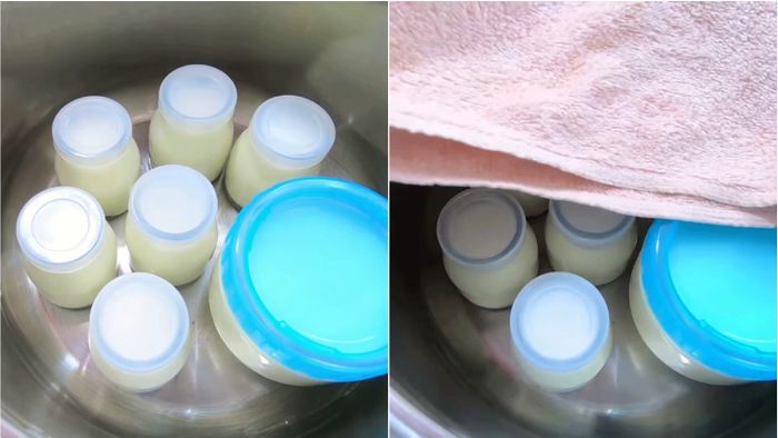 Ngoài ra, nếu bạn không muốn sử dụng phương pháp trên, bạn có thể đun nước sôi lăn tăn rồi tắt bếp. Đặt các hũ sữa chua vào nồi sao cho nước ngập khoảng 2/3 hũ, đậy nắp kín và ủ trong 7 - 8 tiếng. Bạn cũng có thể sử dụng thùng xốp hoặc nồi cơm điện để ủ sữa chua. Lưu ý không nên mở nắp quá thường xuyên để tránh ảnh hưởng đến quá trình lên men.