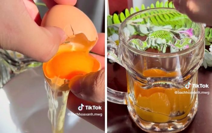 Chia lấy lòng đỏ của ba quả trứng gà và cho vào một chiếc ly sạch.