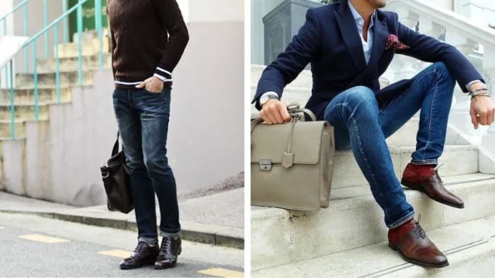 Kết hợp giày tây với quần jeanQuần jean là món đồ thời trang không thể thiếu trong tủ đồ của bất kỳ chàng trai nào. Vậy sao không thử làm mới phong cách của bạn bằng cách phối giày tây với quần jean nhỉ?