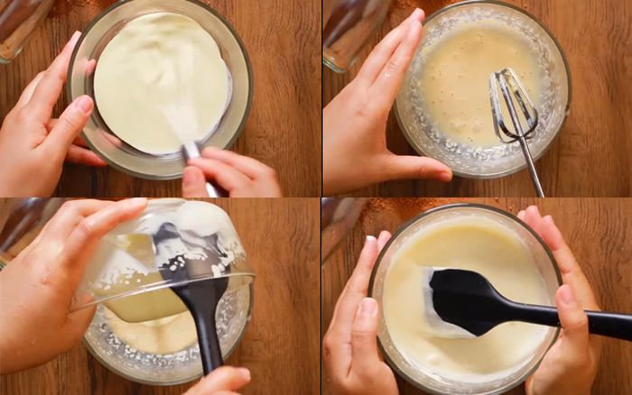 Hòa quyện kem tươi và sữa một cách hoàn hảoCho 40ml kem tươi whipping cream vào tô, khuấy đều cho đến khi kem trở nên mịn màng.
