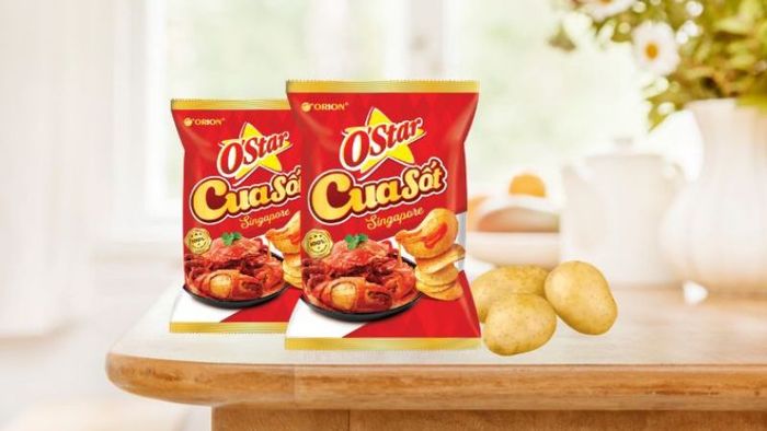 Snack vị cua sốt Singapore O’Star là sản phẩm mới của thương hiệu O’Star, mang đến hương vị cua đậm đà kết hợp cùng khoai tây giòn tan.Snack vị cua sốt Singapore O’Star là một dòng sản phẩm mới mẻ của O’Star. Sản phẩm được làm từ khoai tây tẩm gia vị đậm đà, thấm đều vào từng miếng snack, mang đến một hương vị cua đặc trưng, lôi cuốn và đầy hấp dẫn.