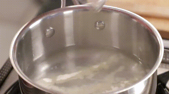 - Đặt một chiếc nồi lên bếp, cho 1 muỗng cà phê bột rau câu vào 360ml nước lọc, khuấy đều cho bột rau câu hòa tan, sau đó đun sôi.