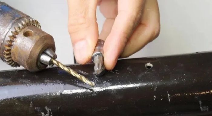 Đập vỡ chốt trên đầu ốc khóa lục giác chìmCách 2 Khoan một lỗ nhỏ trên đầu tua vít lục giác