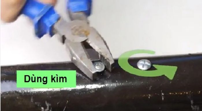 Phương pháp này chỉ hiệu quả khi đầu ốc nhô lên khỏi bề mặt. Bạn có thể dùng kìm hoặc kìm chết để kẹp vào hai cạnh của đầu ốc và xoay ngược chiều kim đồng hồ để tháo ốc.