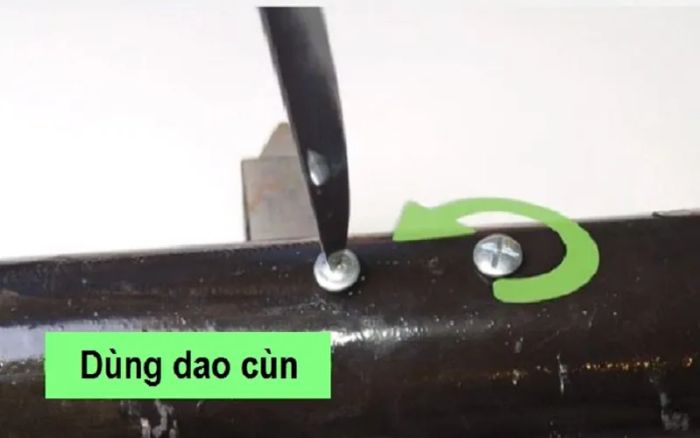 Sử dụng cưa kim loại để tháo ốcVặn ốc đầu bằng