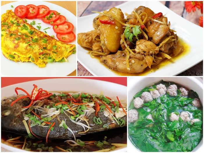 Một bữa tối nhẹ nhàng nhưng đầy dinh dưỡng với thịt gà kho, cá hấp, trứng chiên và canh rau ngót. Đừng quên bổ sung thêm một cốc sữa ấm trước khi đi ngủ để hỗ trợ cơ thể hấp thu dưỡng chất tối ưu nhé!