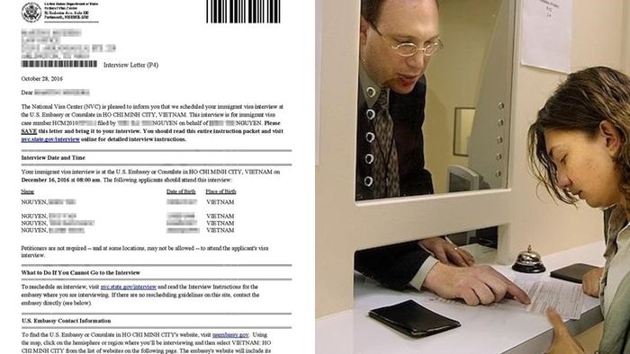 Thư thông báo lịch phỏng vấn chính thứcSau khi NVC hoàn tất xử lý hồ sơ, lịch hẹn phỏng vấn sẽ được gửi qua email cho người xin visa định cư. Lưu ý, lịch phỏng vấn không áp dụng cho diện hôn phu/hôn thê và diện SB-1 (thường trú nhân xin tái nhập cảnh).