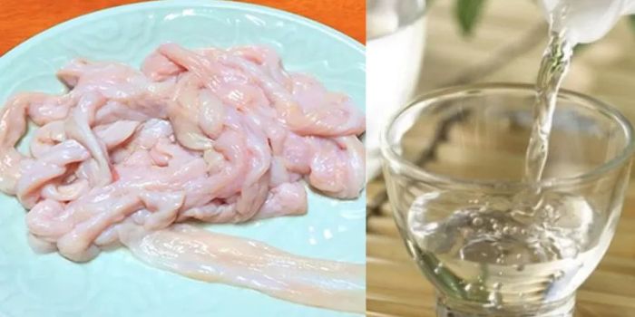 Rửa sạch ruột heo với rượu trắng để khử mùi và giúp lòng trong hơn, sạch hơn khi nhồi.