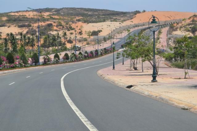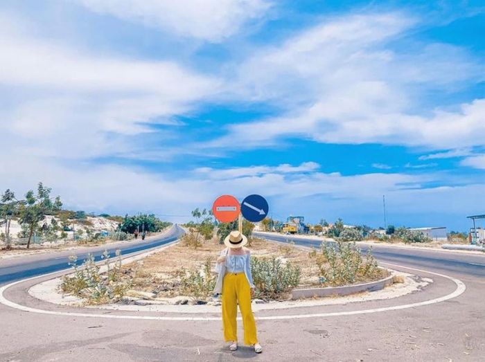 Hai bên đường, bạn sẽ bắt gặp những triền cát vàng mênh mông, đồi dốc tựa những bức tranh phong cảnh tuyệt đẹp. Đặc biệt, khung cảnh ở đây luôn yên bình, vắng vẻ, lý tưởng để các cặp đôi lưu giữ những khoảnh khắc tuyệt vời trong bộ ảnh cưới của mình mà không phải lo lắng về sự xâm phạm của đám đông.